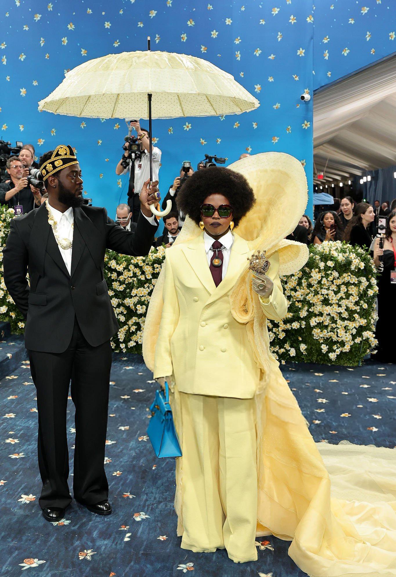 Jude was not at the event to play but to show his Ghanaian roots and black excellence. The designer who went from designing merchandise for Lauryn Hill to her styling him for The Met Gala, wore a gold-embellished crown and neckpiece, matching with his Saint Laurent shoes and suit.