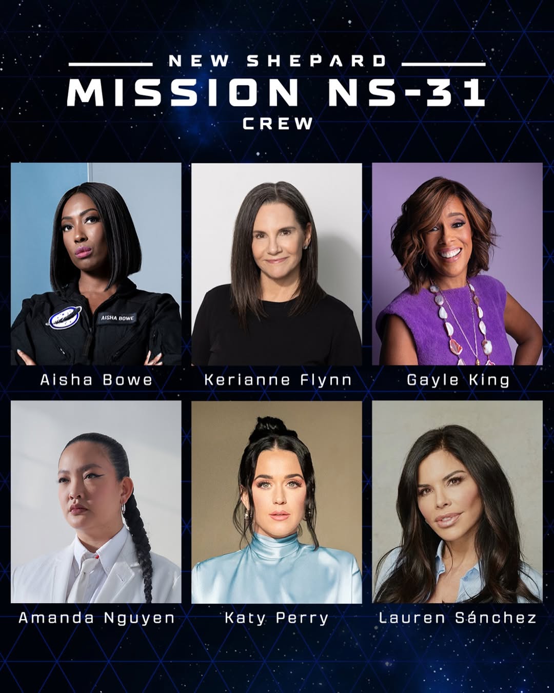 Film producer Kerianne Flynn, civil rights activist Amanda Nguyen, and rocket scientist Aisha Bowe are among the other space females on their team. Pete Davidson, who you may recall canceled a 2022 Blue Origin flight for unknown reasons, should have been able to join them as well.