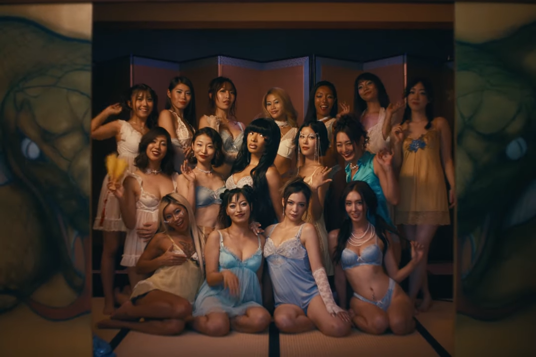 In the video, Megan turns into a mamushi, a deadly Japanese viper, and teams up with Yuki to fight off gangsters who are breaking into her spa. She then pays homage to Akira Kurosawa’s 1990 film “DREAMS” by conjuring up an army of blue-faced troops using the souls of the gangsters who have passed away.