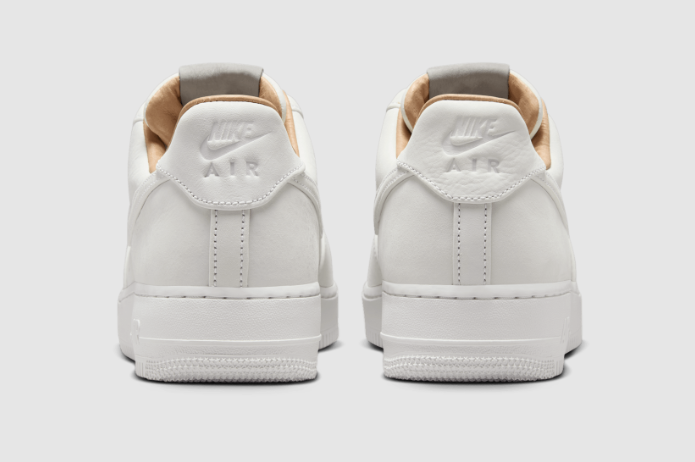 Sighted on Nike’s website, an upcoming Air Force 1 Low has the white-base upper elevated with a more premium leather material. Flanking the aforementioned tan liner is a deconstructed “Air Force 1” tongue tag in grey and “Nike Air” debossed on the heel. Keeping the signature white-on-white look is the tonal Air-cushioned midsole below.