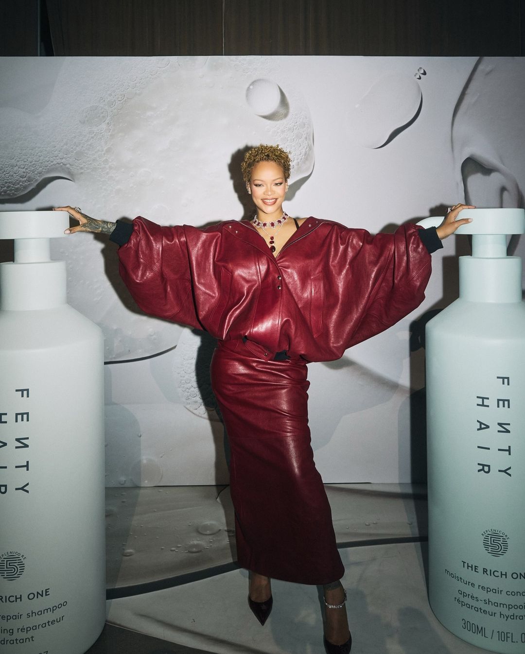 Rihanna Slays Natural Hair & Monochrome Dressy Casual at FENTY HAIR’s Launch Party
