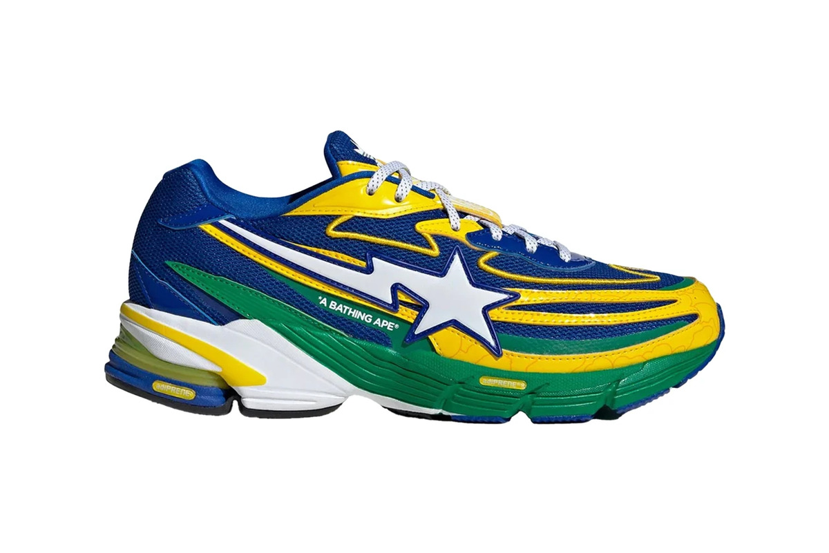 Reviving the Orketro with bold new colorways and signature BAPE elements, this collection promises to capture attention, with the sneaker available in three striking combinations: a sleek black-and-white, a bold blue/green/yellow, and an eye-catching pink/purple. Each colorway reflects the edgy, playful spirit BAPE brings to its collaborations, all while maintaining adidas’ heritage style.