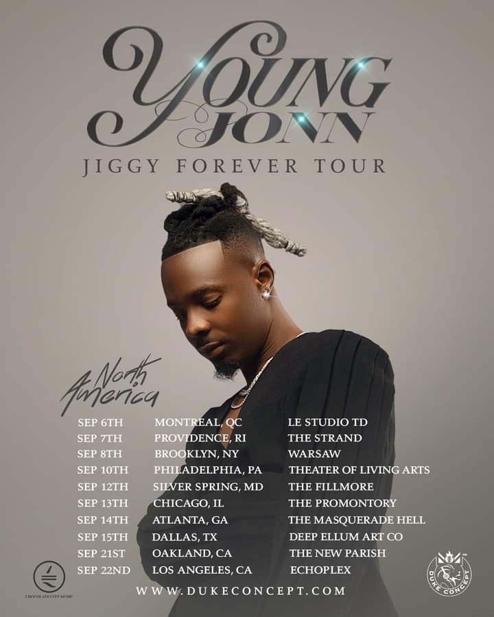 Young Jonn will kickstart from Montreal, QC on the 6th of September 2024 and make stops in Providence, RI, Brooklyn NY and Philadelphia PA on the 7th, 8th and 10th of September respectively. He will continue from Silver Spring, MD on the 12th and make stops in Chicago and Dallas, Texas on the 14th and 15th. After taking a five-day break, he will again hit the road and take center stage in Oakland, CA on the 21st and conclude the 10-city tour in Los Angeles, CA on the 22nd of September.